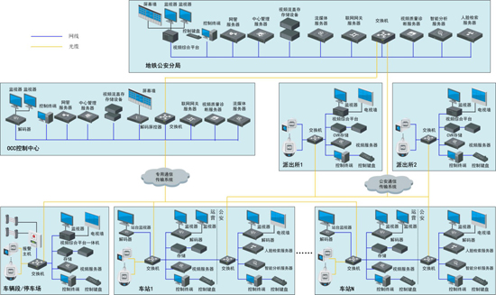 地鐵運(yùn)營(yíng)視頻監(jiān)控系統(tǒng)主要由車站、車輛段/停車場(chǎng)監(jiān)控和OCC運(yùn)營(yíng)控制中心組成。