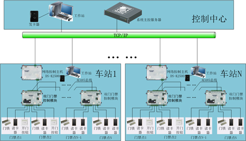門禁系統(tǒng)(ACS)實(shí)現(xiàn)對(duì)車站、車輛段和主變電所設(shè)備和管理用房、出入口、票務(wù)室等重點(diǎn)區(qū)域的自動(dòng)化出入管理、登記功能,以及車站、主變電所考勤管理功能。門禁系統(tǒng)主要由服務(wù)器、門禁控制器、前端設(shè)備(門禁點(diǎn)控制器、讀卡器、門磁、電控鎖)及相關(guān)軟件構(gòu)成。
