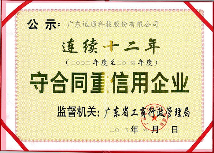 迅通以良好的企業(yè)信譽與口碑榮獲“連續(xù)十二年守合同重信用企業(yè)”,這一榮譽更堅定了迅通“誠信、務(wù)實、創(chuàng)新、領(lǐng)先”的企業(yè)精神。