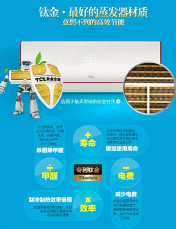 據(jù)行業(yè)內(nèi)專家介紹,由于鈦金的各項優(yōu)異性能,使得其目前已廣泛運用于航天、醫(yī)療、船舶、涂料等許多工業(yè)中,TCL空調(diào)創(chuàng)造性地將鈦金運用于空調(diào)行業(yè)。